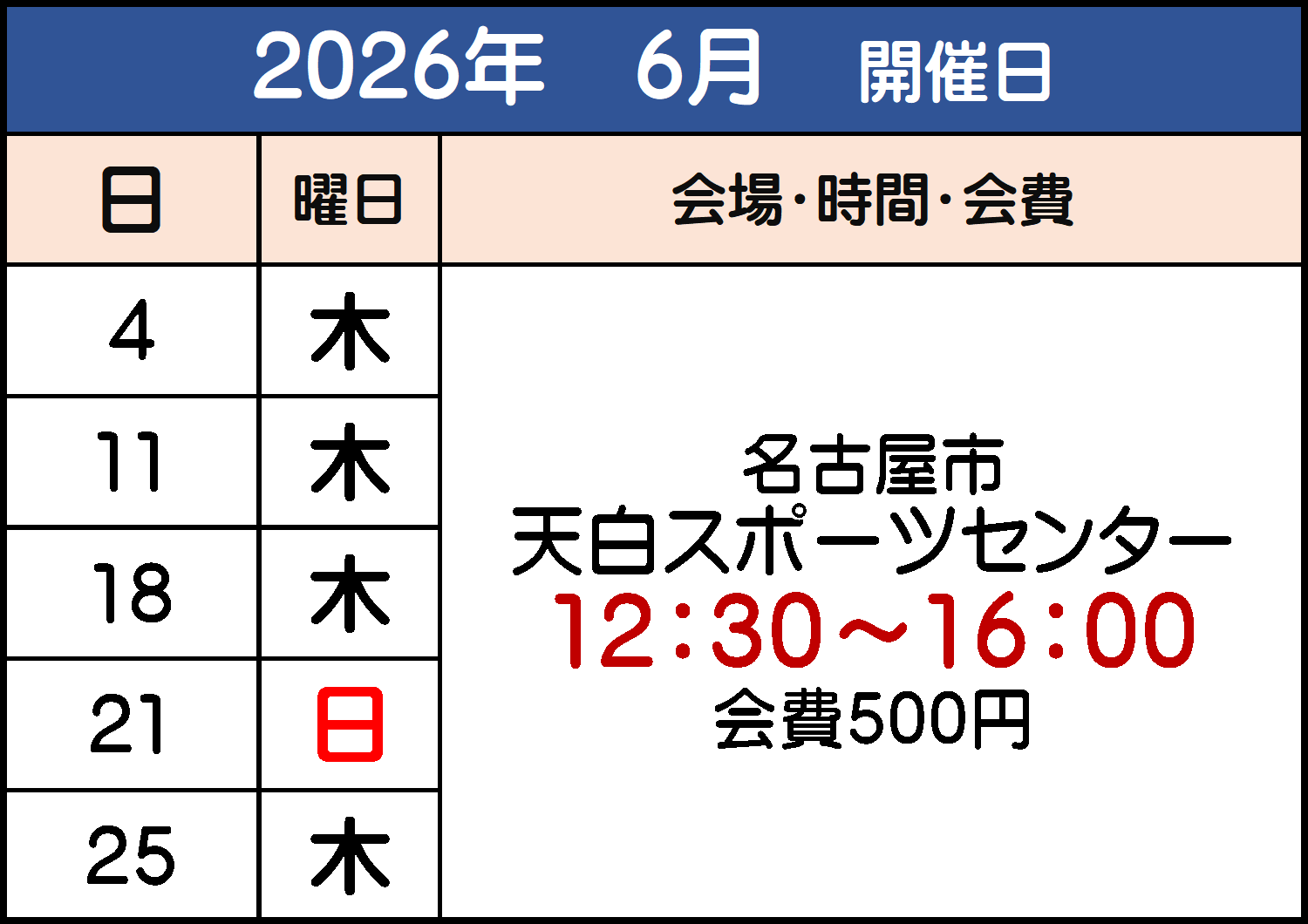 主な活動場所 名古屋市天白スポーツセンター 〒468-0051 愛知県名古屋市天白区植田3-1502 TEL:052-806-0551 FAX:052-806-1164 団体の連絡責任者 加藤賢治 ☎ 052-653-8065