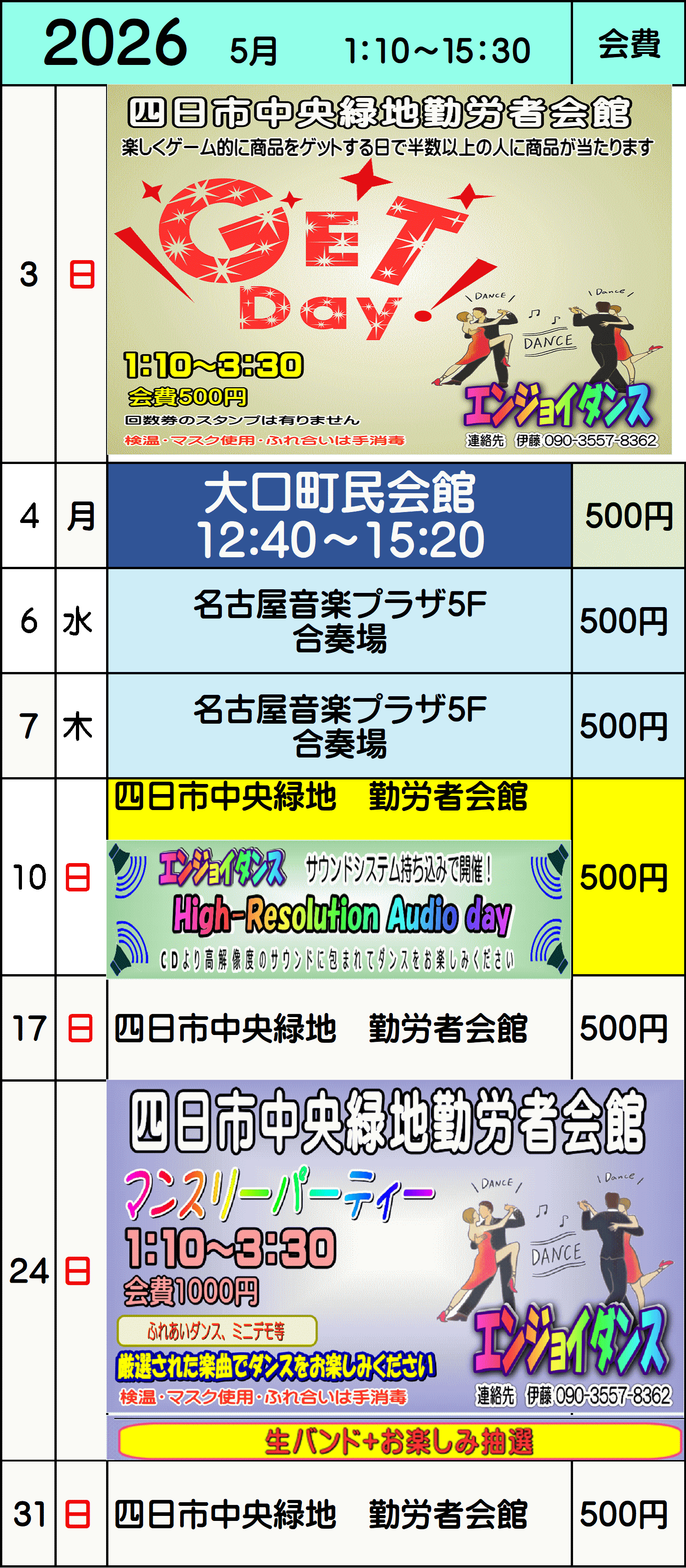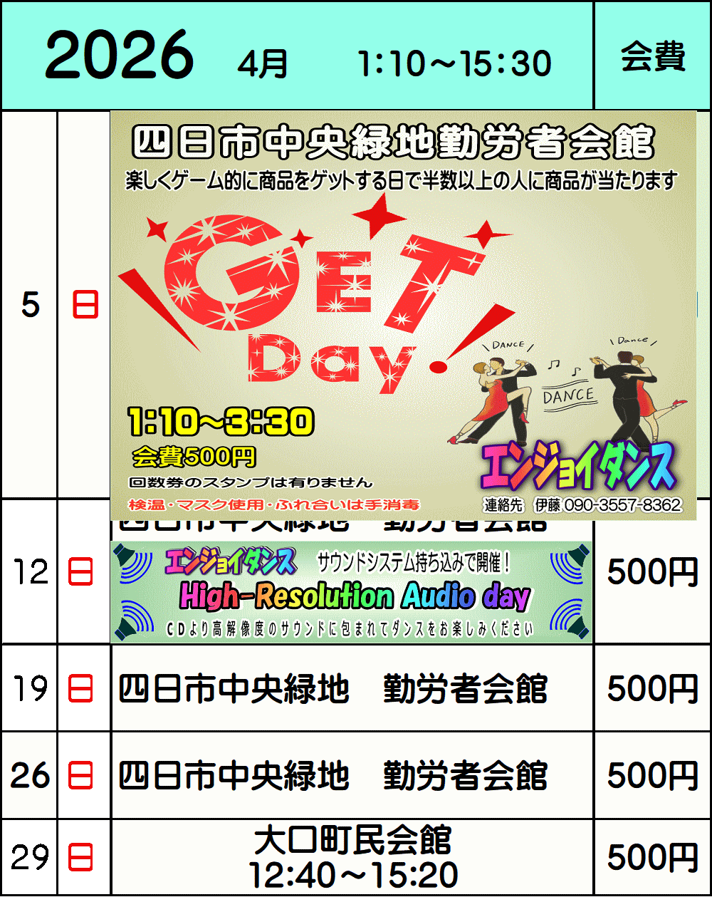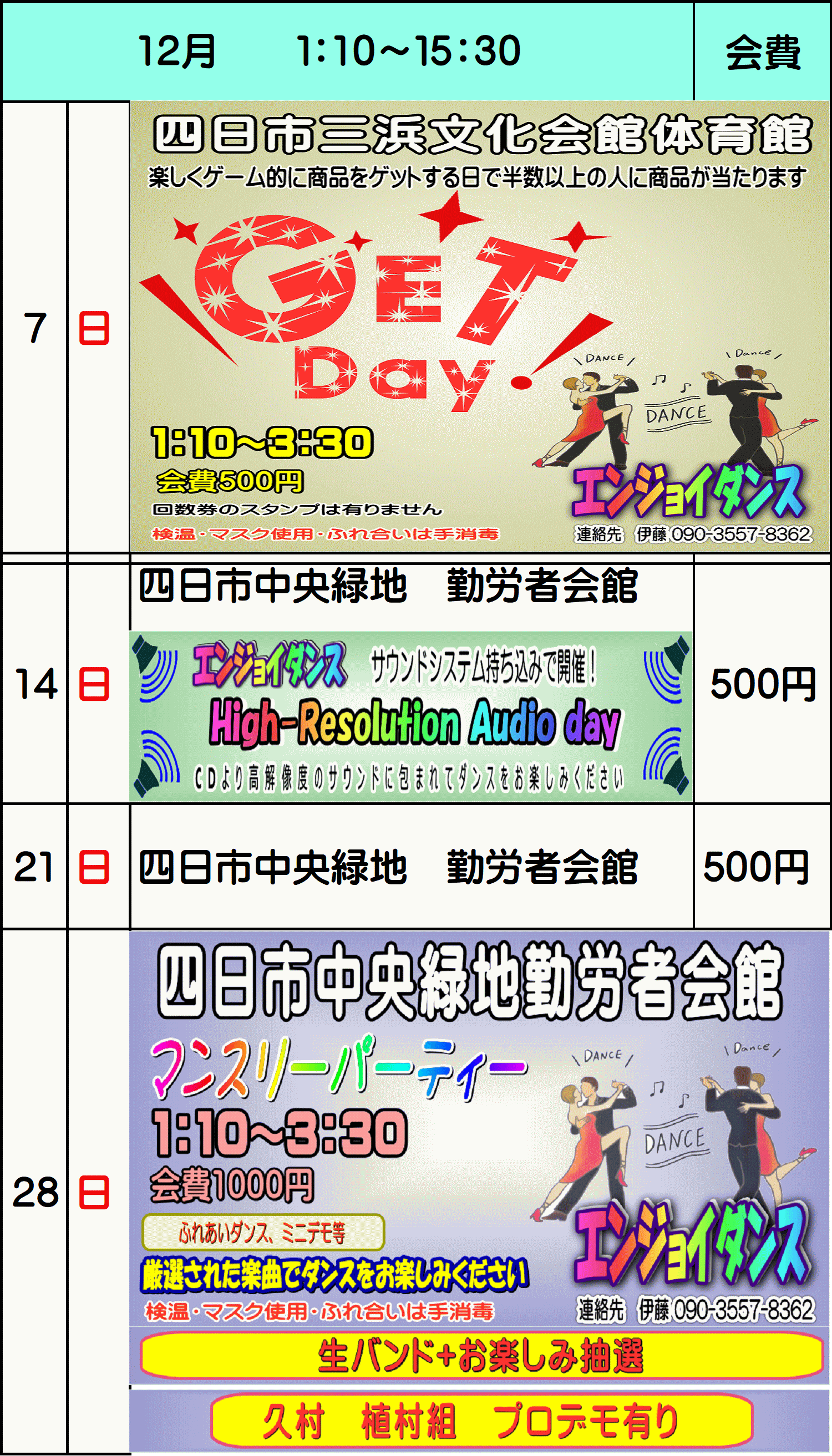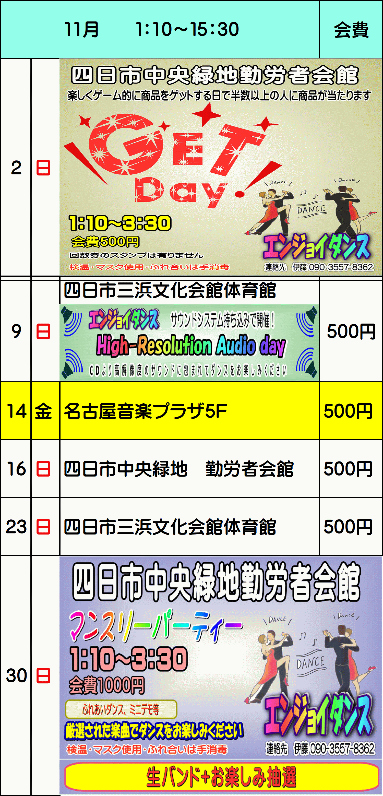 | 名称 | エンジョイダンス | ![]() 四日市市三浜文化会館(カルチュール三浜) |