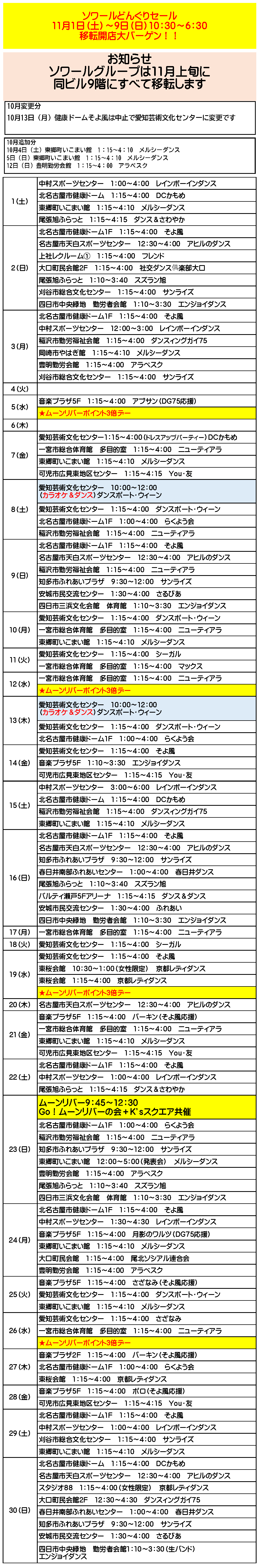 各会場とも優先行事等により予定が変更になることもございます。