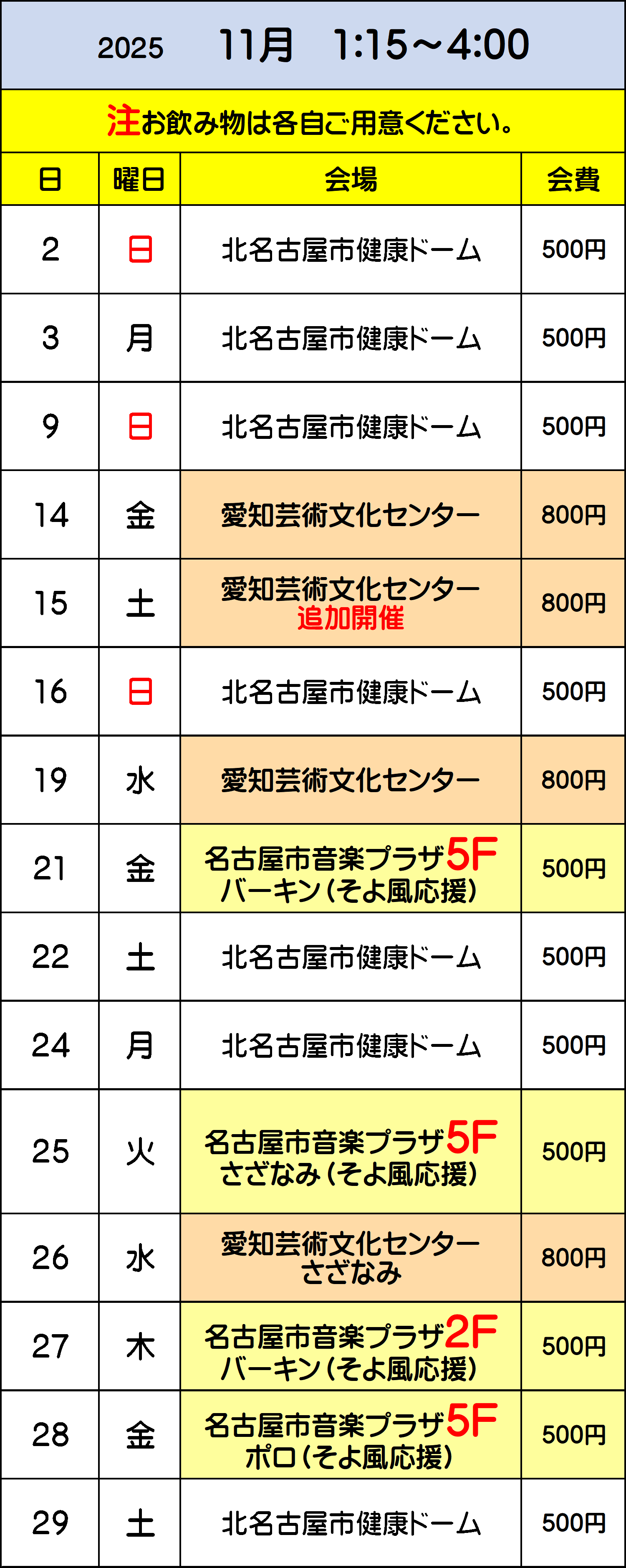 ※各会場への電話でのお問い合せはご遠慮ください。 お問い合せはそよ風主催者まで。